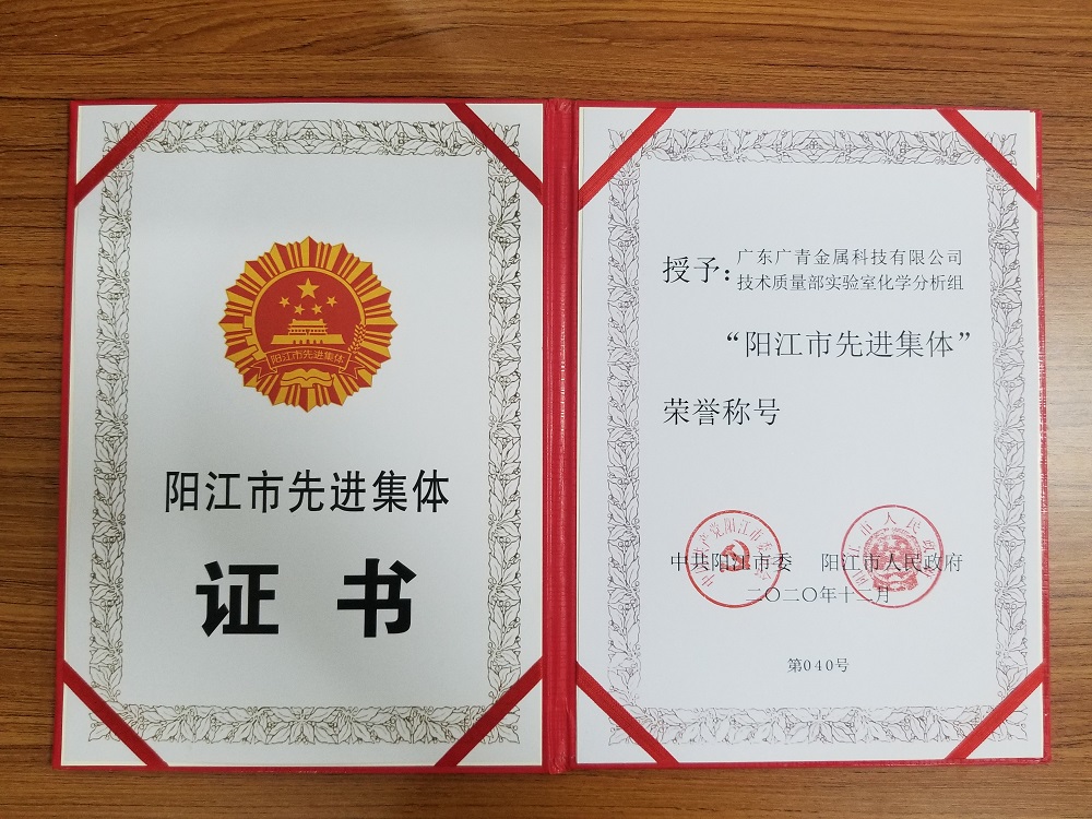 12月11日,阳江市劳动模范先进工作者和先进集体表彰大会在阳江市委会堂召开。广东广青金属科技有限公司技术质量部实验室化学分析组荣获“阳江市先进集体”荣誉称号,公司总经理助理兼镍铁厂厂长梁国燊荣获“阳江市劳动模范”荣誉称号。